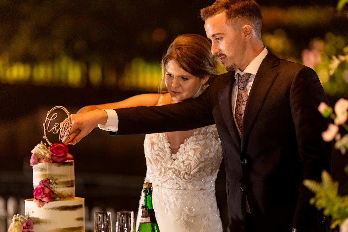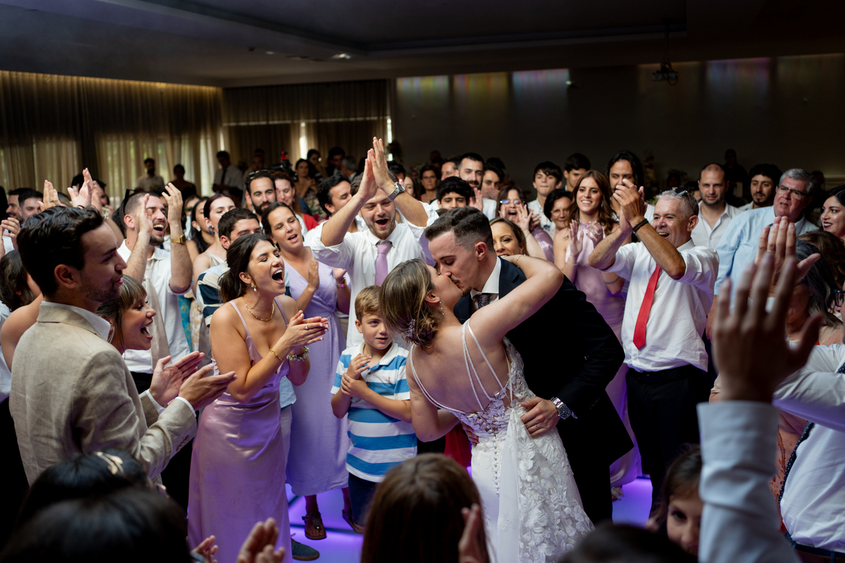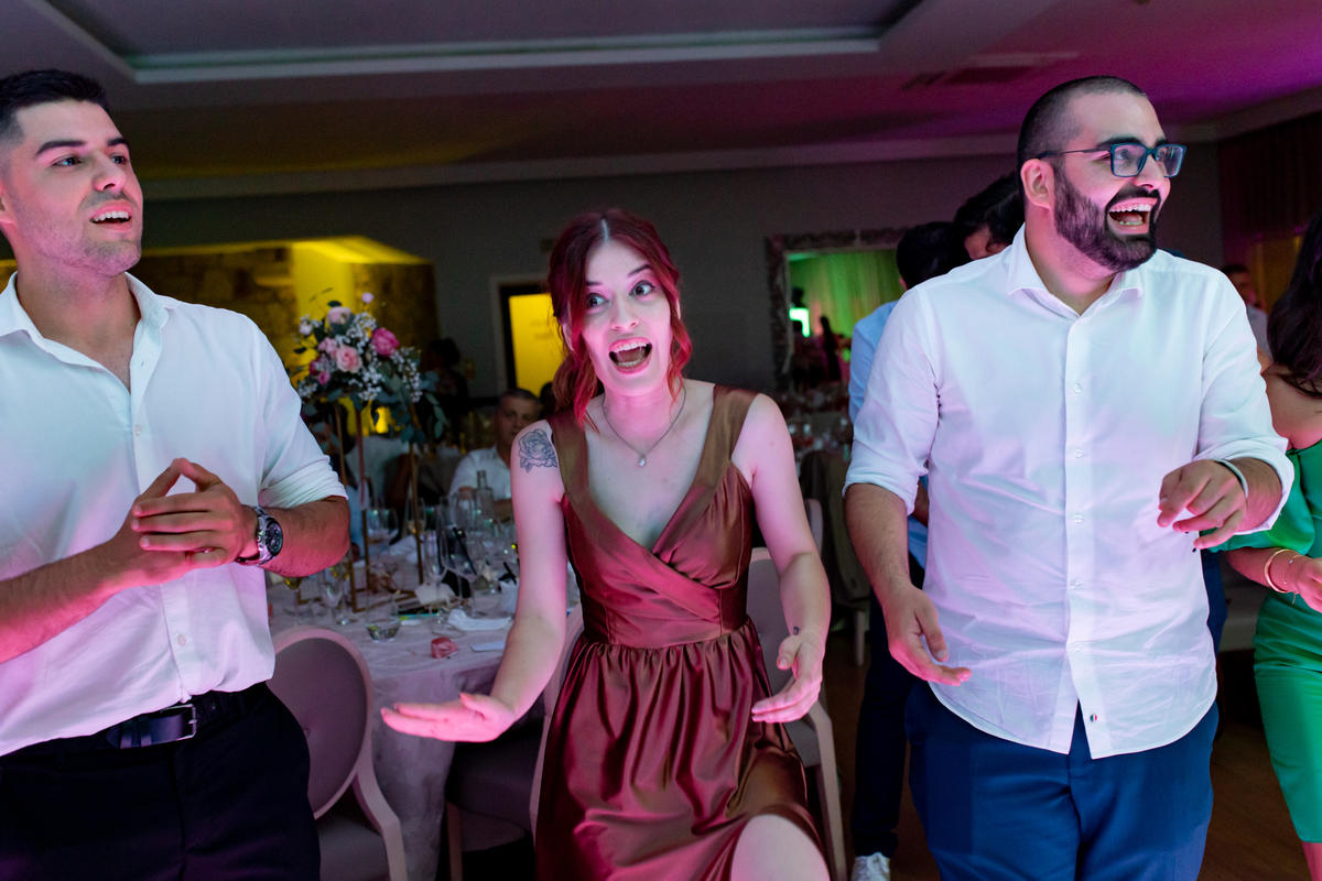 A coreografia dos noivos, preparada com esmero pela Mariana Monteiro, foi um dos pontos altos da festa. Logo de seguida tivemos o corte do bolo, onde os convidados, envolvidos na magia do momento, testemunharam não apenas um gesto simbólico, mas uma experiência sensorial completa, onde o som e a emoção se entrelaçavam numa harmonia perfeita.