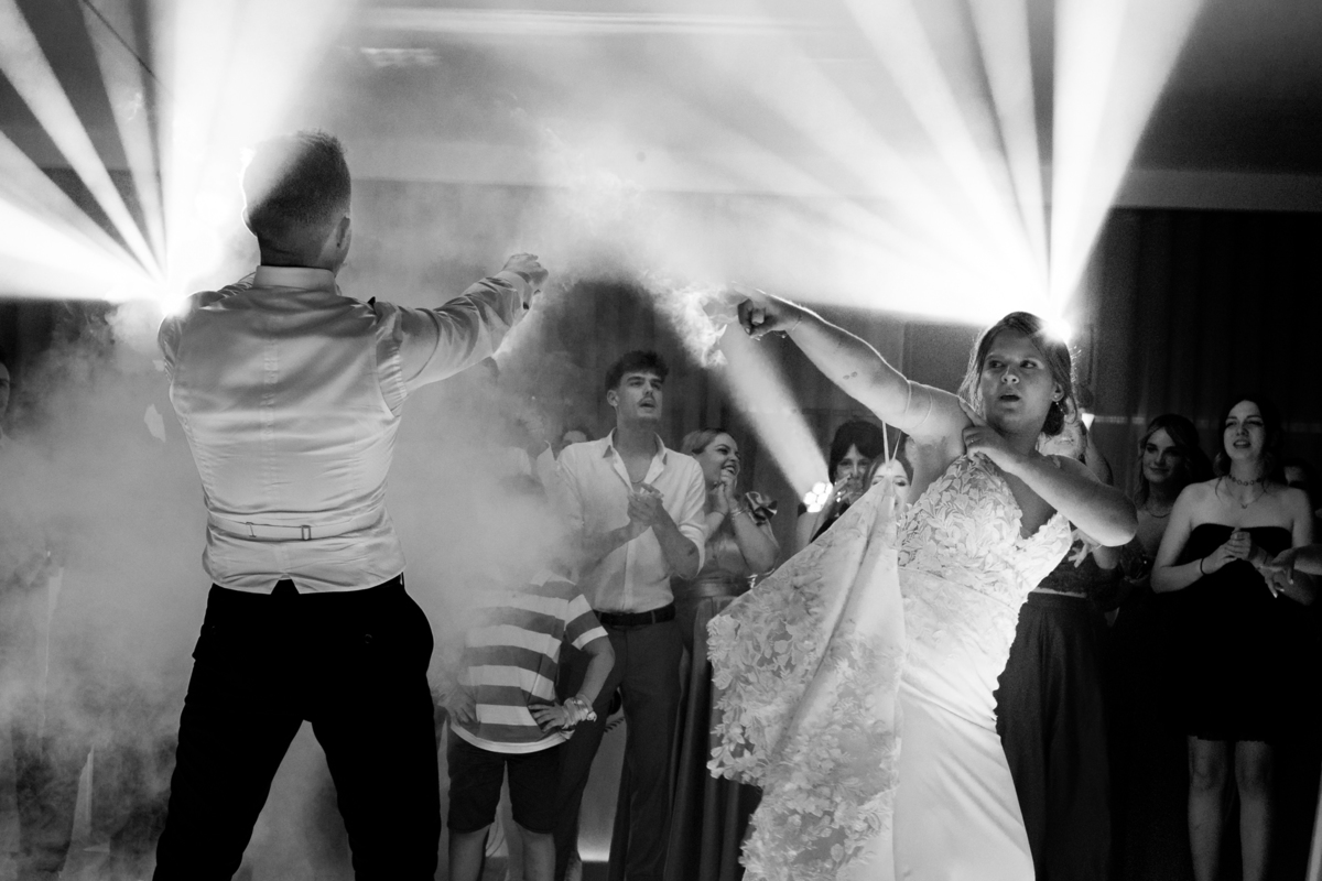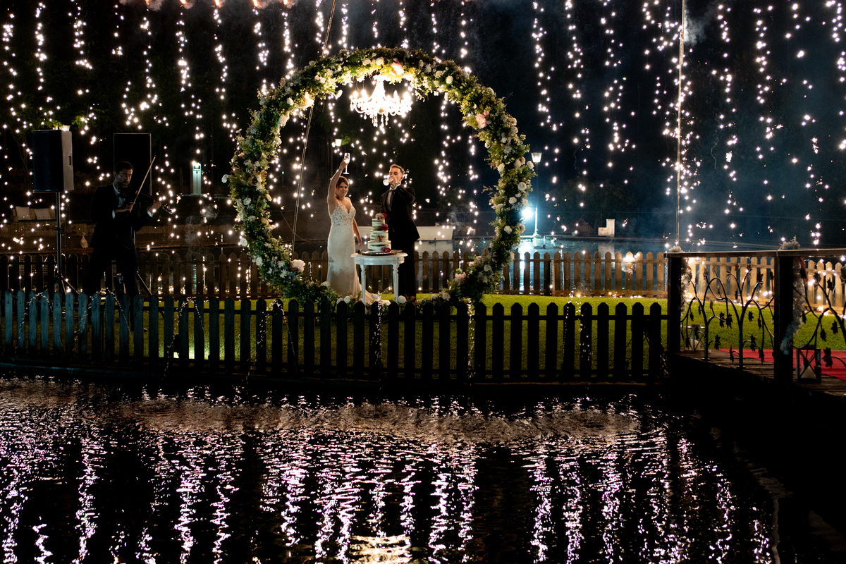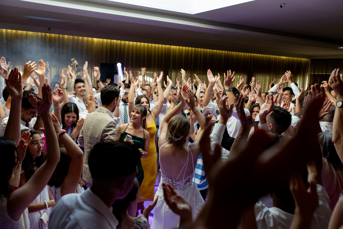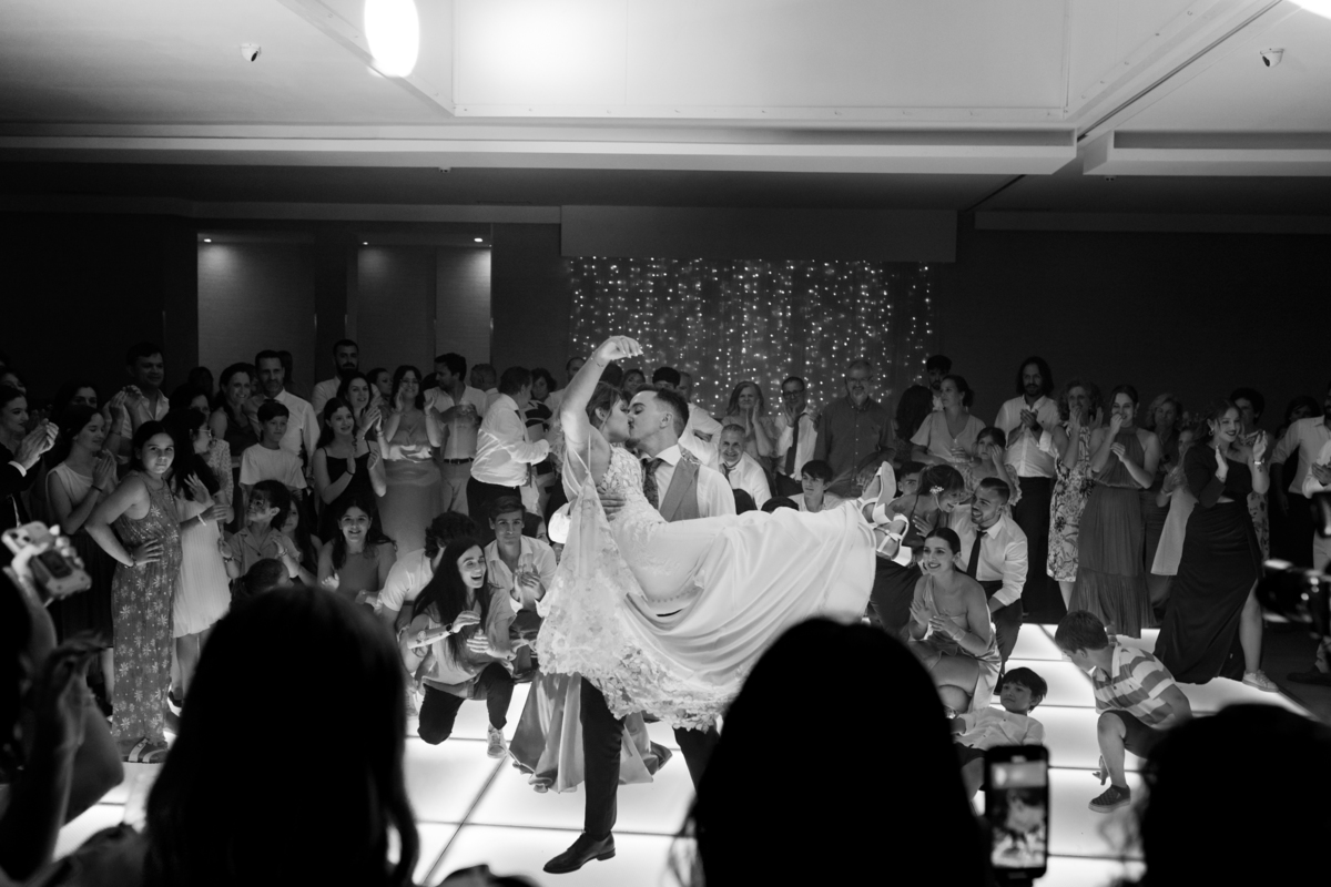 A coreografia dos noivos, preparada com esmero pela Mariana Monteiro, foi um dos pontos altos da festa. Logo de seguida tivemos o corte do bolo, onde os convidados, envolvidos na magia do momento, testemunharam não apenas um gesto simbólico, mas uma experiência sensorial completa, onde o som e a emoção se entrelaçavam numa harmonia perfeita.
